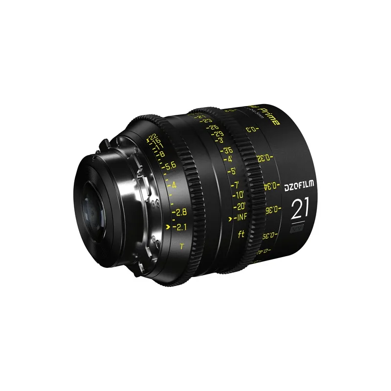 Relatively small and lightweight, the DZOFilm VESPID 21mm T2.1 Lens is part of the VESPID series of lenses from DZOFilm and is well suited for independent and high-end full-frame cinematography. The lens has an 80mm front diameter, allowing it to work with virtually any cine-style matte box. The small size makes this lens an attractive option when working with drones and gimbals, as well as when shooting handheld or run-and-gun. The interchangeable PL mount and included EF mount allow you to use the fully manual lens on a variety of modern and vintage cine cameras, while the full-frame coverage supports sensors that have an image circle up to 46.5mm for use on cameras with sensors up to full-frame without vignetting.