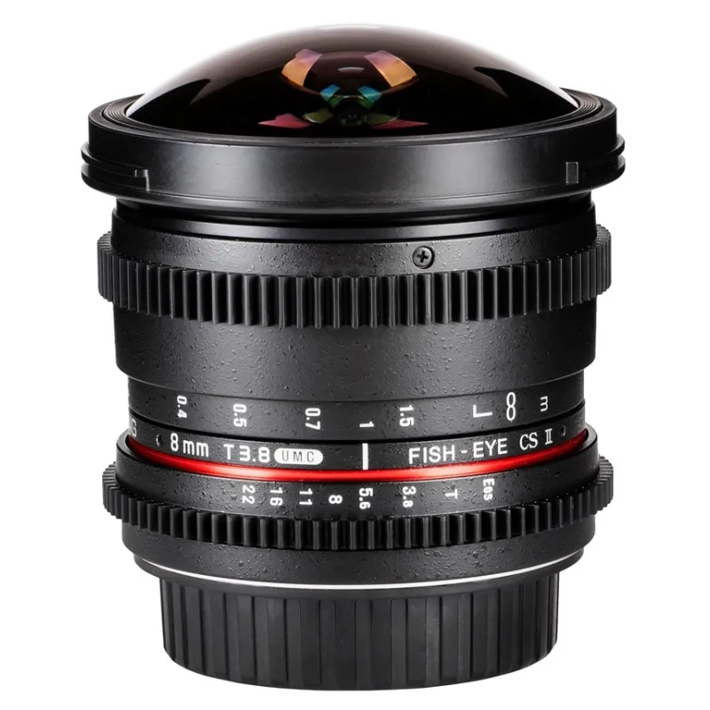 The Samyang 8mm T3.8 IF MC VDSLR Fish-Eye Lens is an ultra wide angle, Manual Focus objective for Canon HDSLRS. This lens is specially designed to get the best from your Canon HDSLR. Compatible with all Canon HDSLR cameras with an APS-C sensor. Gives a 180s degree image.