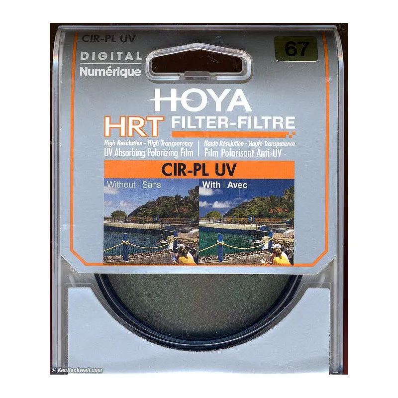 The Hoya HRT circular polarizing filter is unique in its design since it incorporates a High Rate Transmission film that permits more visible light to be passed through the filter while still producing the same degree of polarized light. This filter now permits the equivalent of 1/3 stop more light to be taken in yet it still filters the same amount of polarized light. This can be a huge benefit to users of both digital and HD technology cameras and lenses. This new polarizing film is also used in the latest HD LCD TVs. The glass of the Hoya HRT filter also has UV absorbing properties making the HRT a combination UV/circular polarizing filter.