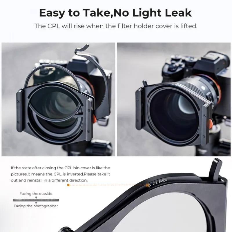 Conveniently take out, with no light leak, rear CPL intall design no effect to filter stacked use.