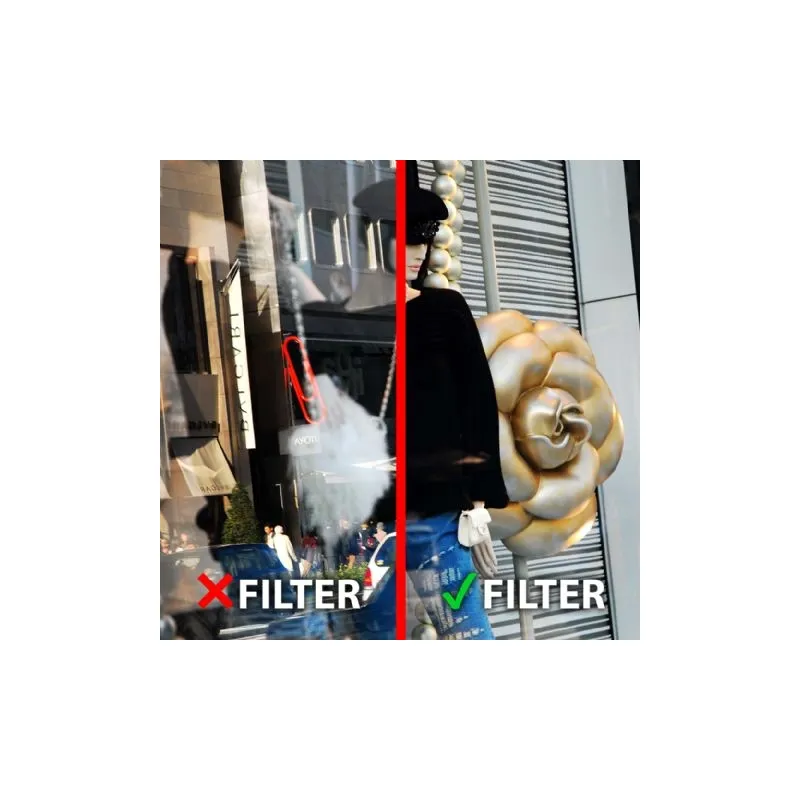 ;By turning and adjusting the outer ring of the filter, you can decide whether to focus on the removal of reflection or to focus on the depth of the image. Due to this, the circular polarization filter can also be used when photographing landscapes as the filter can be adjusted to enhance the blue tones in sky. Further, the filter can enhance the contrast of the clouds in sky and is generally suitable for use outside during the day.