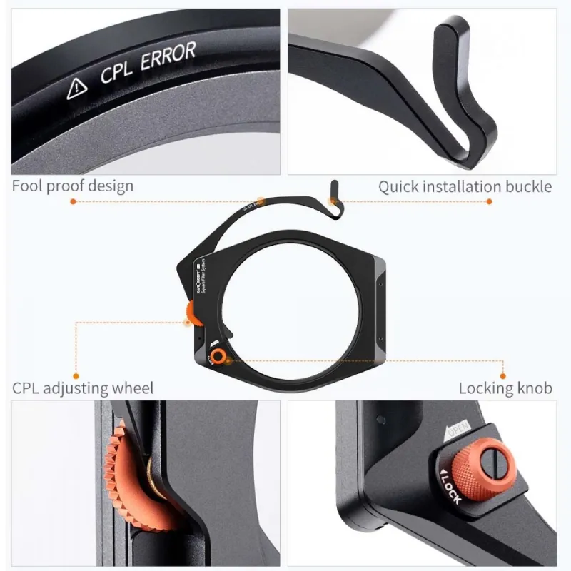 The square filter frame can protect the lens from falling from a height of 1.5 meters to a flat ground without chipping.