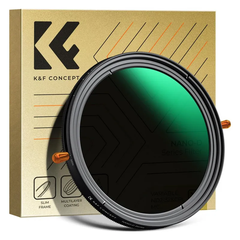 The K&F 67MM D Series Multifunctional CPL + Variable ND Filter (ND2-32) combines two essential filters in one, enhancing color and contrast while controlling light and reflections.