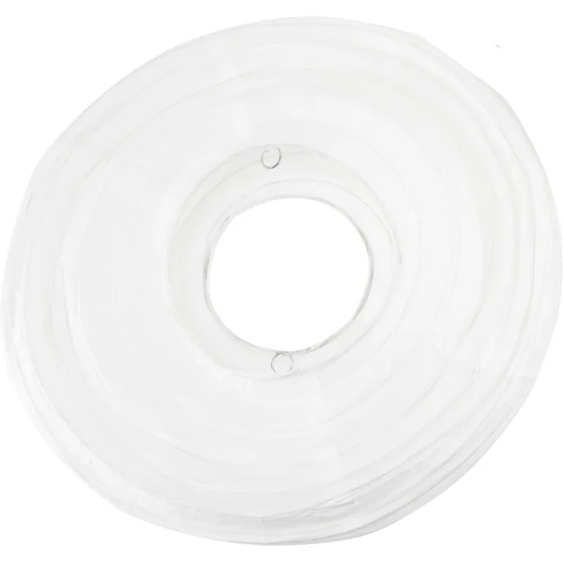 The white round lantern is made with paper and metal wiring. Thanks to its foldable construction, it unfolds like an accordion and can be assembled in just seconds.
