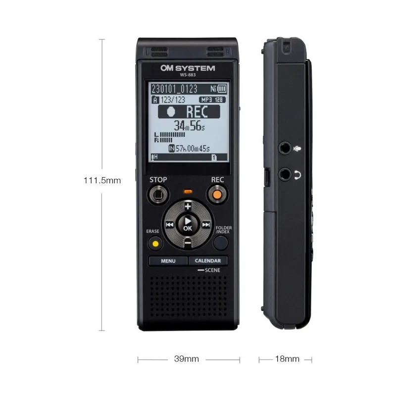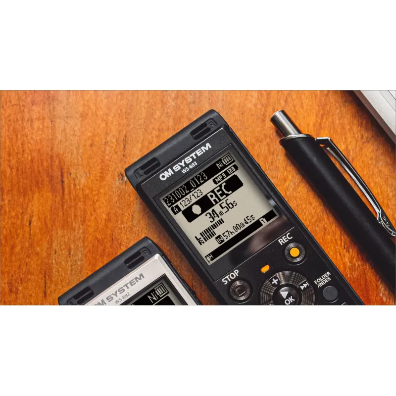 With the OM System WS-883 digital recorder, you can record high-quality stereo sound. The recorder uses high-tech microphones that ensure clear and natural audio, whether youre recording lectures, interviews, meetings, or music.