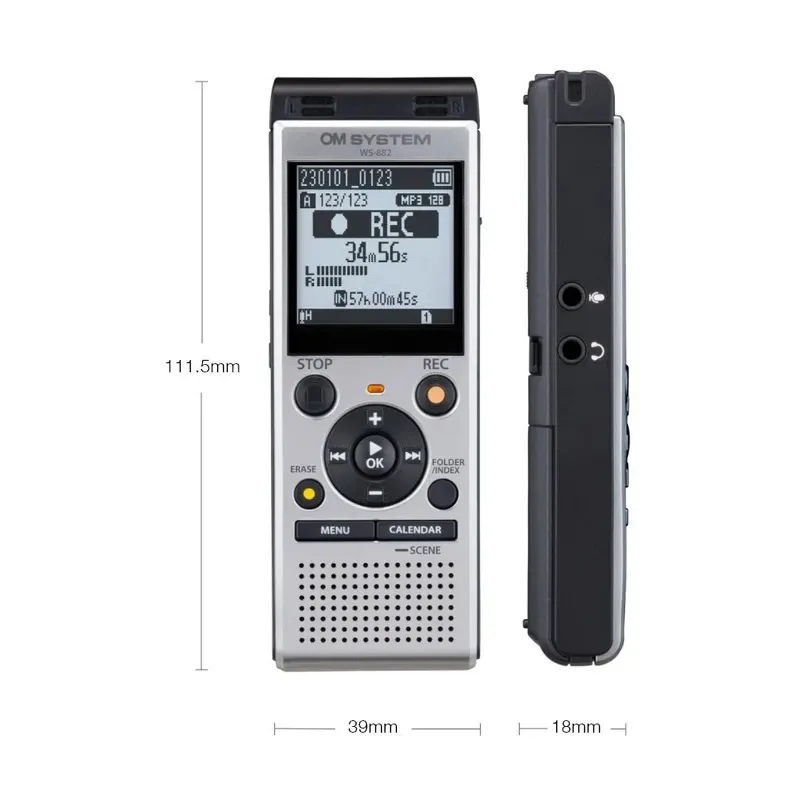 With the OM System WS-882 digital recorder, you can record high-quality stereo sound. The recorder uses high-tech microphones that ensure clear and natural audio, whether youre recording lectures, interviews, meetings, or music.