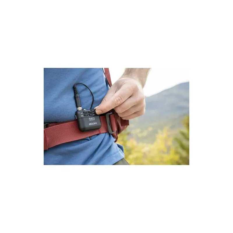 Zoom F2-BT garso įrašymo įrenginys su lavalier mikrofonu ir Bluetooth programėlės valdymu