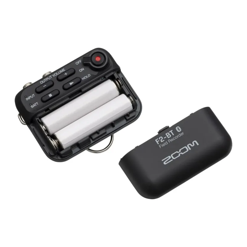 Norint pasivyti vietinio gamybos tempo, F2-BT gali būti maitinamas per dvi AAA šarmines, ličio arba NiMH įkraunamas baterijas (šarminės įtrauktos), Zoom AD-17 maitinimo adapterį (parduodamas atskirai) arba USB Type-C baterijų paketą (parduodamas atskirai). Su iki 14 valandų veikimo laiku su AAA baterijomis, visos dienos įrašai F2-BT nėra problema.