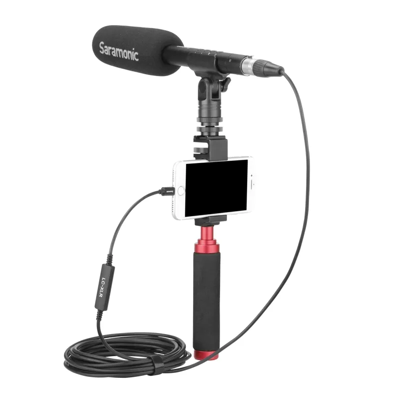 Because the LC-XLR makes a purely digital connection with your device, the sound quality it delivers is phenomenal. This is achieved in part by its high-quality integrated analog-to-digital converter, and its Apple MFi Certified Lightning connector. Another huge benefit is that the LC-XLR is compatible with a vast array of Apple products, from the iPhone 5 to the latest cutting-edge devices. Any dynamic XLR microphone can be used with the LC-XLR. Battery-powered condenser microphones can be used as well, like the Saramonic SR-TM1 shotgun (sold separately). The female XLR connector on the LC-XLR features a locking mechanism that prevents the mic from accidentally getting unplugged, and its 19.5’ (6m) cable gives you plenty of length to work with. A handy hook-and-loop cable wrap is included to keep the LC-XLR tidy.