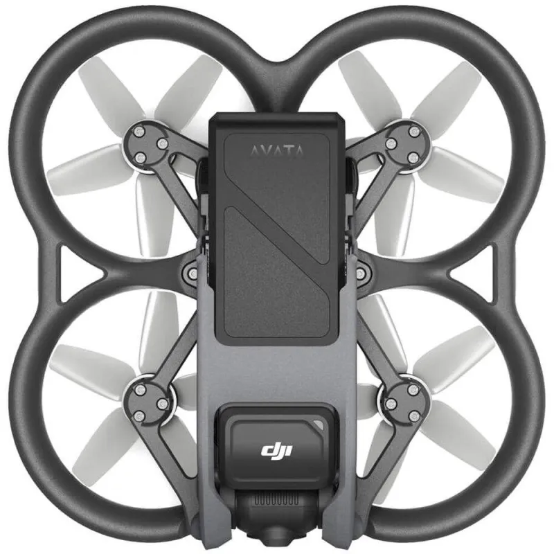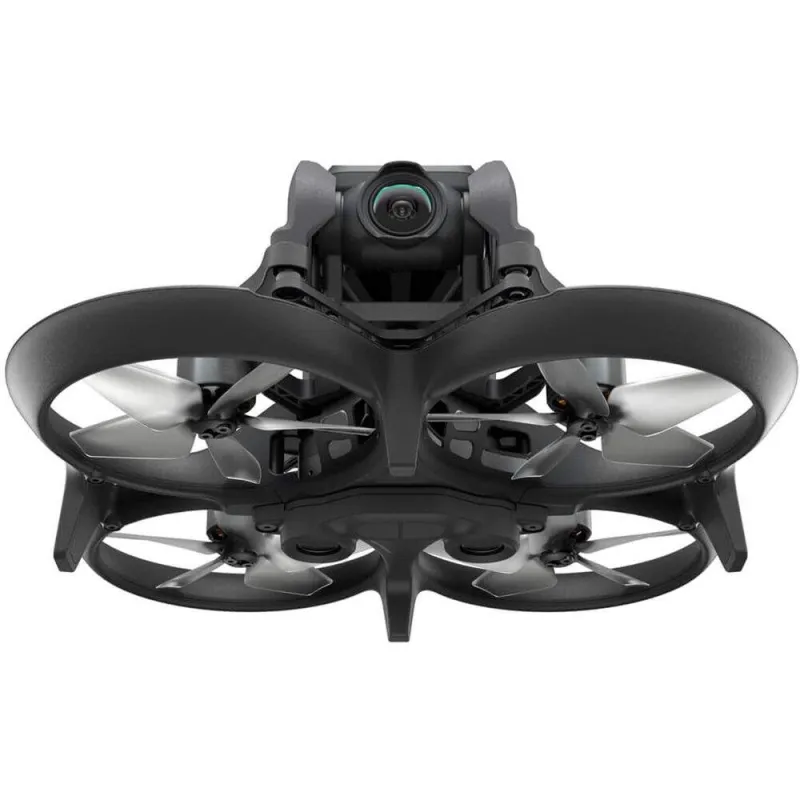 Safely film steady, ultra-wide 4K stabilized video indoors or outside, in and around objects, with the DJI Avata Pro-View Combo FPV Drone with RC Motion 2. Sporting what some call a "cinewhoop" design, the Avata comes in a palm-sized form factor with all four propellers protected with attached guards. This allows for close-up filming indoors, near people, and through small openings without risking damage or injury to people and property. If the Avata does come in contact, it can just bounce off and keep flying.