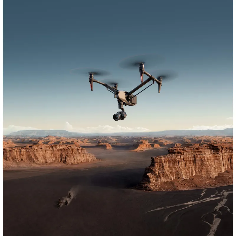 Improving upon many aspects of the Inspire 2, the DJI Inspire 3 Drone keeps up with the advancements and needs of film and television producers, allowing filmmakers to capture creative and stunning results. It begins with the X9-8K Air, an 8K, full-frame, 3-axis, gimbal camera custom-built for the Inspire 3. It joins a new 1/1.8" FPV camera with double the DFOV of the Inspire 2. Together, they help capture professional footage and complex shots thanks to a customizable obstacle avoidance system, built-in centimeter-level RTK accuracy, and tracking solutions that allow accurate and repeatable shots.