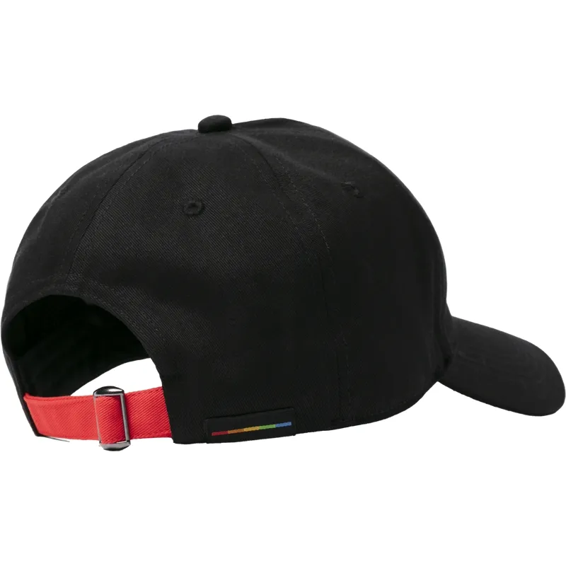 Klasikinė 6-panelių kepurė su reguliuojama juosta ir siuvinėtu dizainu. Pagaminta iš 100% juodos medvilnės.