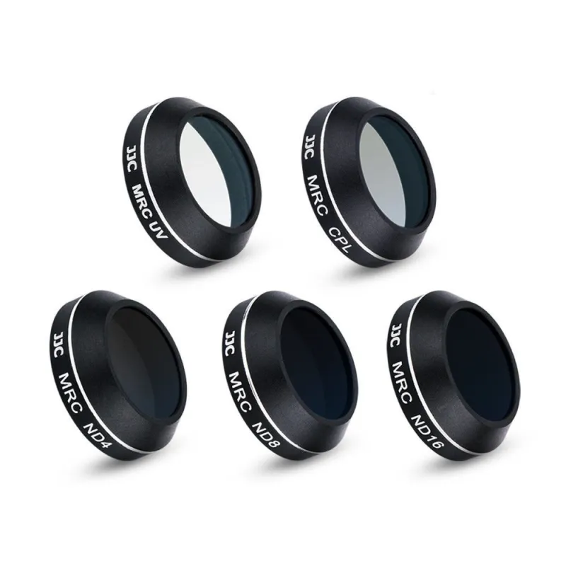 The JJC Digital Filter for DJIMAVIC PRO is a kit consisting of 5 filters. These five filters are a ND4, ND8, ND16, UV and CPL.