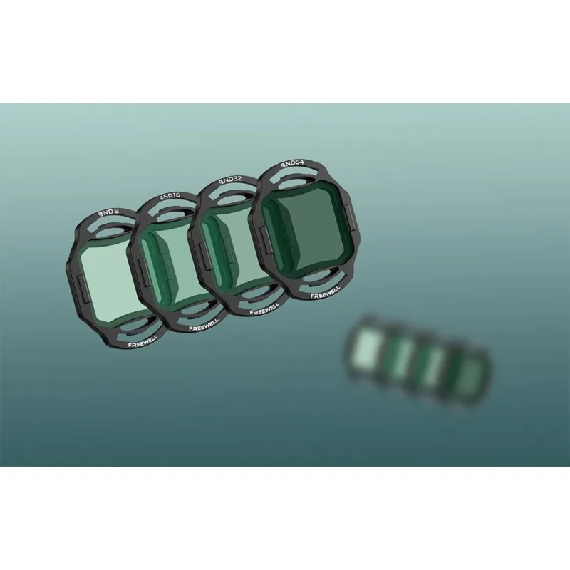 Rinkinį sudaro keturi filtrai su skirtingais optinės tankio vertėmis - ND8, ND16, ND32 ir ND64 - leidžiančiais lanksčiai pritaikyti įrašymo parametrus pagal šviesos lygį. Saulėtomis dienomis sumažinsite peršvietimo riziką, pasiekdami natūralesnį judesio neryškumą ir sklandumą, kurio tikitės iš profesionalių oro kadrų.