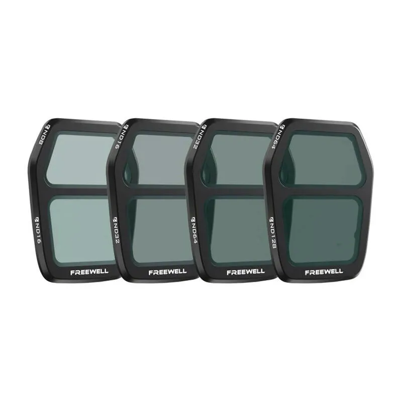 Freewells Split ND Filter Set of 4 is a must-have accessory for anyone who wants to achieve balanced exposure and capture beautiful landscapes with their DJI Air 3S drone. The set includes four Split ND (Split Neutral Density) filters - ND8/ND16, ND16/ND32, ND32/ND64, and ND64/ND128, which allow you to control the amount of light entering the lens and get the right exposure.