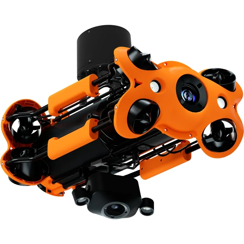 The Auxiliary Camera can be adjusted within an angle of 0-90 degrees, and can be freely fitted onto the top or bottom of the ROV, allowing the shooting angle to be adjusted in a variety of ways