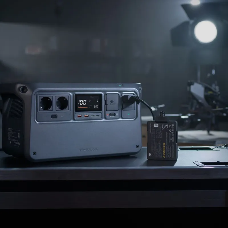 Boasts fast-charging power output of 200 W, and can connect the DJI Power-series power station to charge DJI Inspire 3 batteries. It takes approx. 44 minutes to charge one DJI Inspire 3 TB51 Intelligent Battery from 0 to 100 and 28 minutes to charge from 10 to 95.