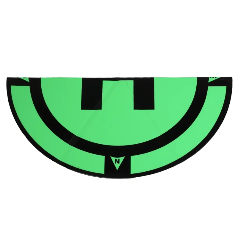 The Tri fold pad folds quickly with 3 folds to 1/6 the unfolded size and comes with a rubber strap for easy storage and transport. The black helipad and compass markings ensure pilot safety and directional awareness. ,