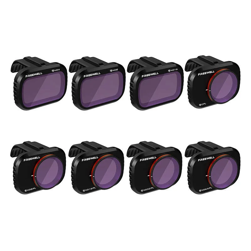 The Freewell All Day set includes 8 filters for the DJI Mavic Mini 2 / Mini 2 SE. The set consists of various ND filters, ND/PL filters, and a CPL filter, allowing you to control light entering the lens and achieve stunning effects in your photos.