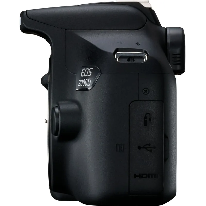 Compact and capable, the Canon EOS 2000D is a sleek entry-level DSLR featuring versatile imaging capabilities and a helpful feature-set. Incorporating a 24.1MP APS-C CMOS sensor and DIGIC 4+ image processor, the 2000D produces high-resolution stills with notable clarity, reduced noise, and a flexible native sensitivity range from ISO 100-6400 for working in a variety of lighting conditions. The sensor and processor also afford shooting continuously at up to 3 fps for photographing moving subjects, as well as Full HD 1080/30p video recording. Benefitting shooting with the optical viewfinder, a 9-point AF system incorporates a single center cross-type AF point for increased accuracy and focusing speed, and a contrast-detection focusing system offers refined autofocus precision when recording video or photographing in live view. The rear 3.0" 920k-dot LCD offers a bright, clear image for playback and review, and built-in Wi-Fi with NFC also offers the ability to wirelessly share imagery from your camera to a linked mobile device for instant online sharing.