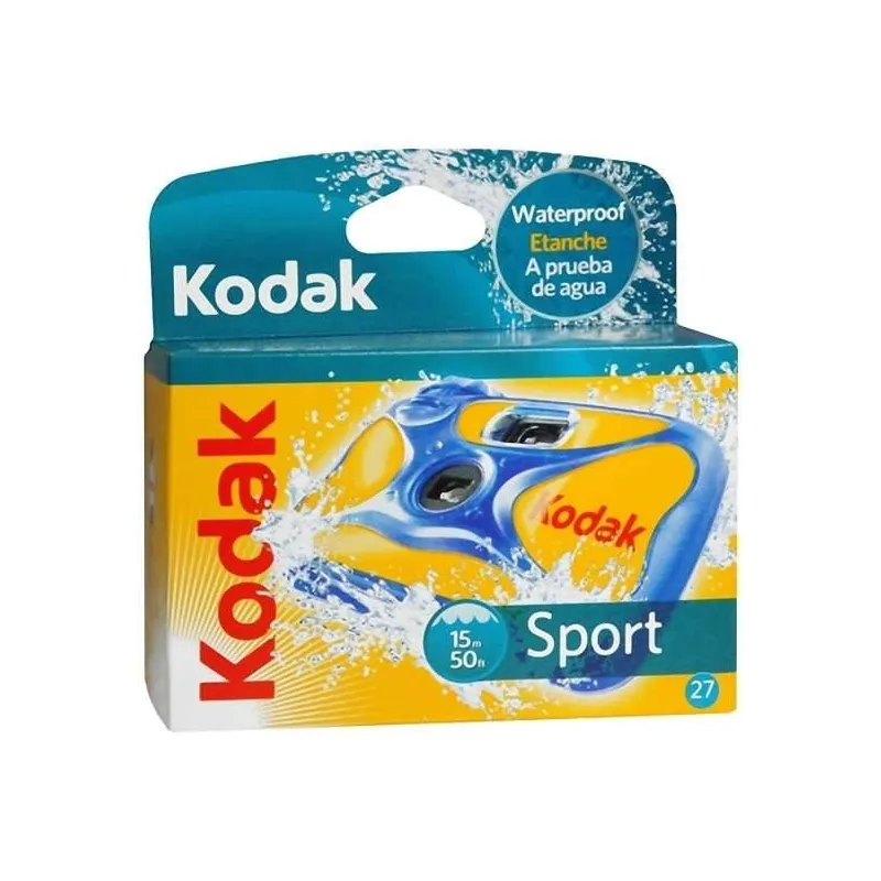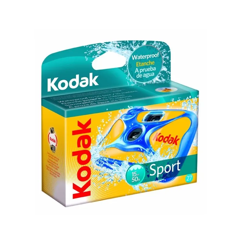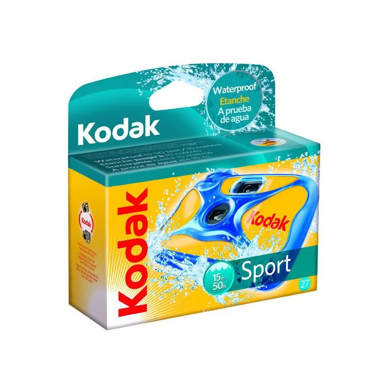 Kodak Sport Disposible Camera, 27 Exposure, Waterproof up to 50 feet (Discontinued by Manufacturer);Divers and snorklers, capture the vibrancy of life 50 feet underwater.^No blurry pictures from sunscreen smudges; Avoid scratches from sand and snow that can ruin pictures.^Rugged, durable, shock-proof rubber shell.^Great for bumpy rides and rocky trails.^Stocked with Kodak MAX Versatility Plus 800 Film