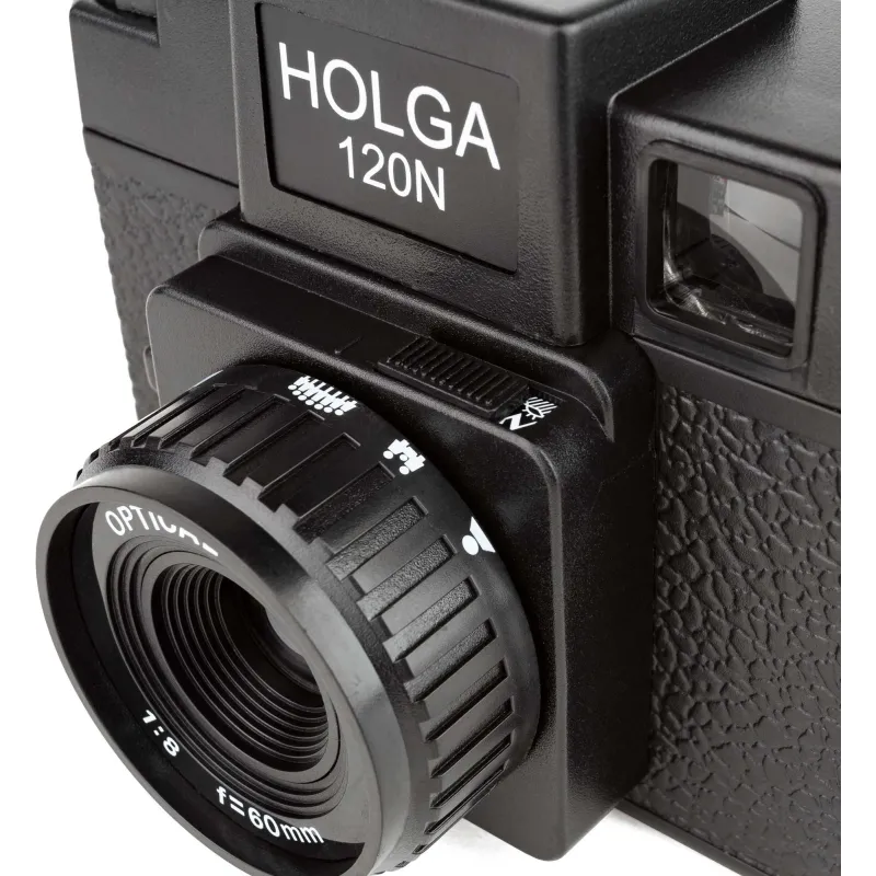 Get back to basics and be creative with the Holga. The traditional 120N takes 120 roll film, and comes with a 60mm f/8 plastic lens. A tripod mount is incorporated into the base of the camera for stable long exposure shooting and a top hot shoe accepts optional electronic flashes.