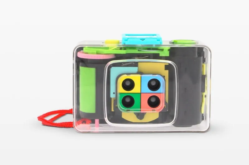 Miniatiūrinė 35mm kamera daro keturias nuoseklias nuotraukas viename kadre, idealiai tinka veiklos mėgėjams.