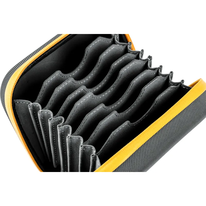 It has a smooth zipper and 8 separate pockets which protect your filters and get easy access to all your filters.
