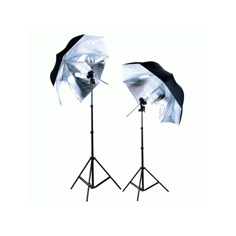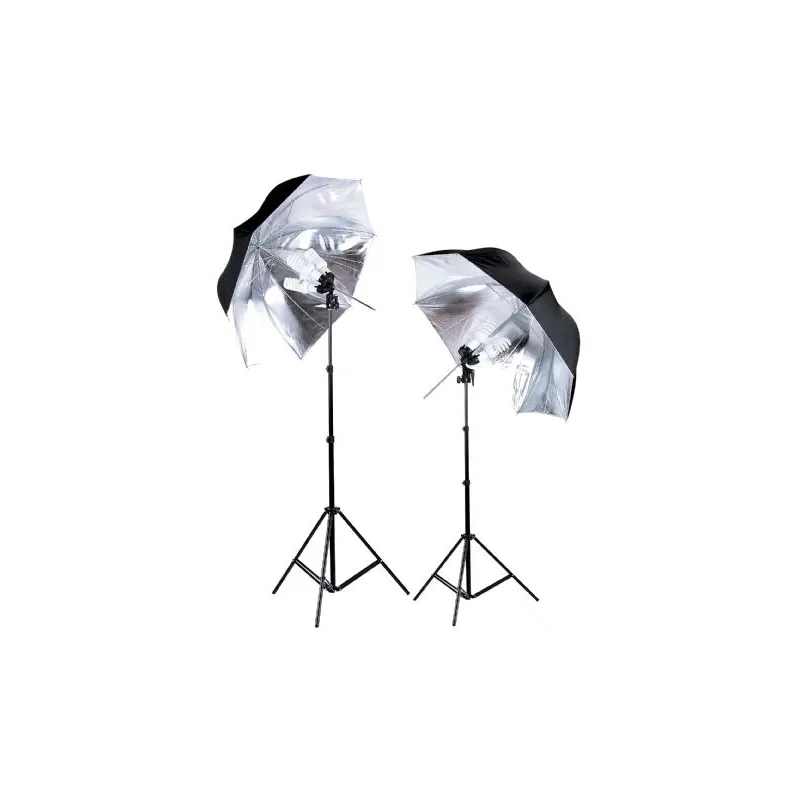3x Daylight lamp 45W PL-L45; 3x Lamp holder RH-01; 3x Lamp stand I-2001; 2x Flash umbrella silver/white; 1x Flash umbrella diffuse white