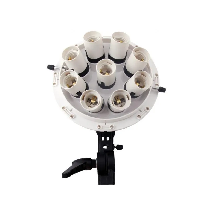 ;Optional spiral lamps can be purchased if you wish to have more light. The 28W bulbs can be replaced with 5 40W, 55W, 70W or 85W lamps. The maximum light output is 2125W, which is equivalent to 5 85W spiral lamps. A maximum of 9 lamps can be used simultaneously. Due to the thickness of the delivered 40W lamps, a combination of 5 40W lamps and 4 28W lamps can be used. 5 of the 55W, 70W or 85W lamps can also be used, however due to their size, 4 28W lamps cannot be used to fill the rest of the sockets. Further, the LHD-B928FS can be easily mounted on a universal light stand and a reflector can be used instead of the supplied octabox. Such optional accessories can be found in the optional accessories tab below.