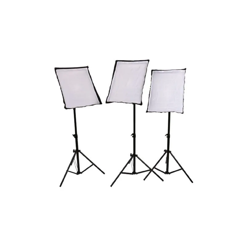 The SB03 set from StudioKing is a complete solution for creating a three-point exposure. This creates a perfect picture when taking interviews and presentations. The color temperature of 5700K guarantees a beautiful daylight. Also for making product photos, you can use the SB03 set. You can adjust the lights in height and angle, to lighten the subject perfectly. The set consists three 135W light bulbs, which are placed in a diffuser cloth. Also, three honeycombs are included to steer the light even more. Three solid stands provide a stable base. These have a maximum height of two meters. The softboxes have an opening of 49 x 69 cm.