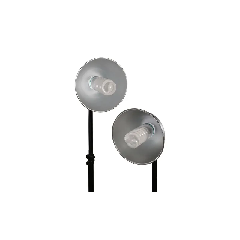 The PK-KS11 from StudioKing is a complete light set, which consists of two 85 watt spiral lamps. With the PK-KS11 you receive the lamp fittings, reflectors, lamp stands and a handy transport bag. So you can get started right away. The lamps of the PK-KS11 have a color temperature of 5500K. This guarantees a nice picture in many situations. The reflector has a diameter of 26 cm and the lamp stand has a maximum height of 210 cm.
