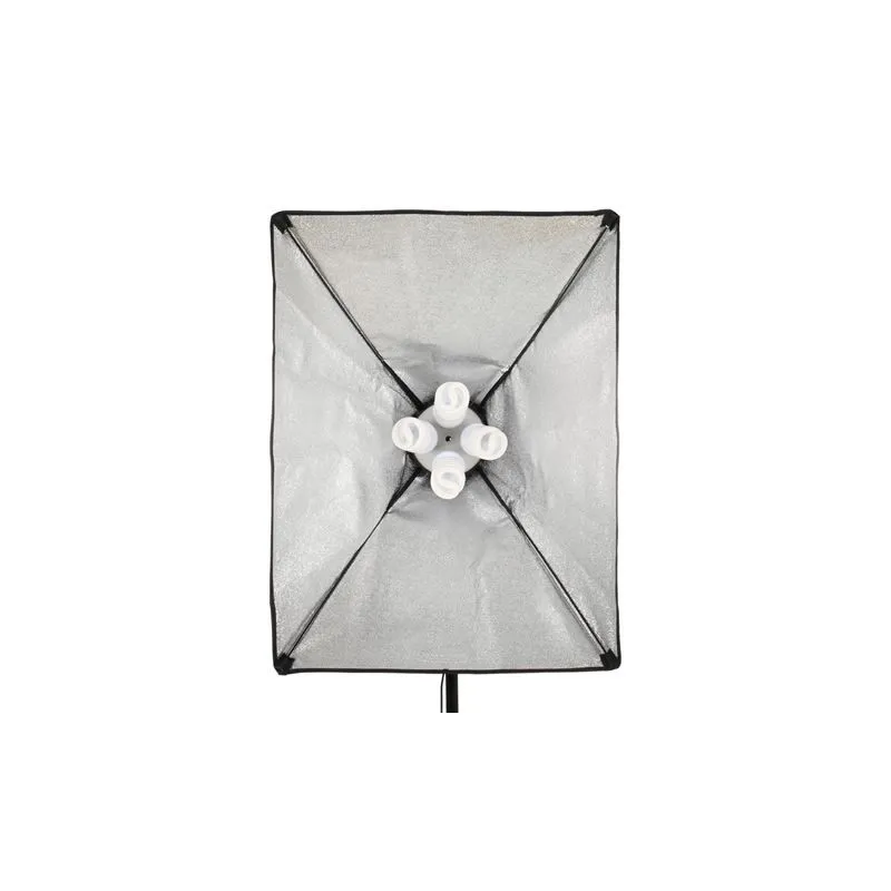 The PK-SB5070 set from StudioKing is a complete solution for creating natural lighting. This ensures a perfect picture when recording interviews and presentations. The colour temperature of 5500K ensures beautiful daylight. You can also use the PK-SB5070 set for taking product photos. Because the lamps can be moved and you can adjust them in height and angle, you will light the subject perfectly. The set consists of 8 daylight lamps of 45W, which you divide between two softboxes with diffuse cloth. Two solid stands provide a stable base. These have a maximum height of two meters. The softboxes have an opening of 67 x 50 cm.