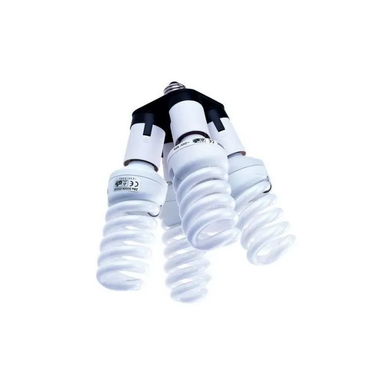 The Falcon Eyes AD-4E27 Lamp Holder Adapter allows you to increase your light output. The AD-4E27 simply screws into the light socket, allowing you to use up to 4 lamps instead of 1. The Falcon Eyes ML-24, ML-28, ML-40 and ML-55 spiral lamps are all compatible with this adapter and can be found in the optional accessories tab below.