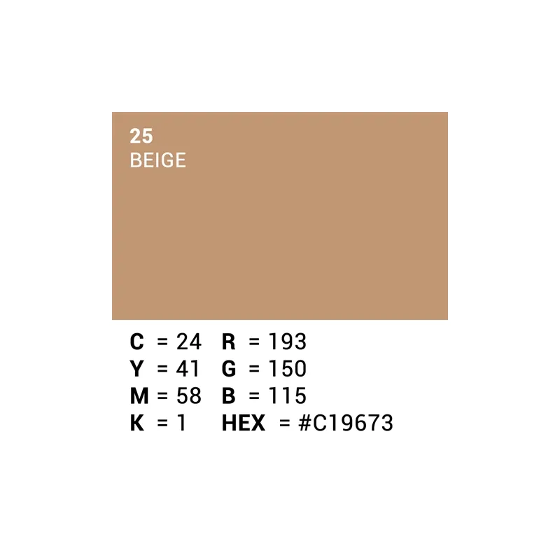 This roll of Superior Specialties backdrop paper is a 1.35 x 11m roll in the color 25 Beige, or light brown. With this roll of professional quality paper you can create a smooth, even background.