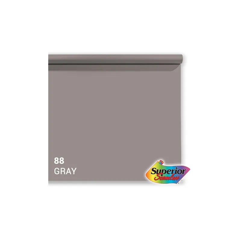 This roll of Superior Specialties backdrop paper is a 3.56 x 15m roll in the color 88 Grey. With this roll of professional quality paper you can create a smooth, even background.