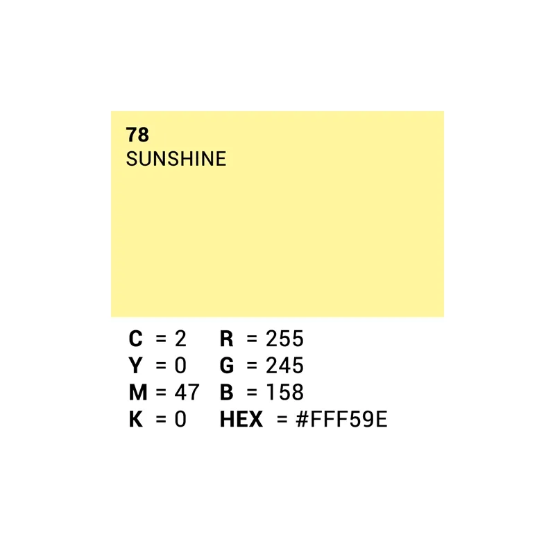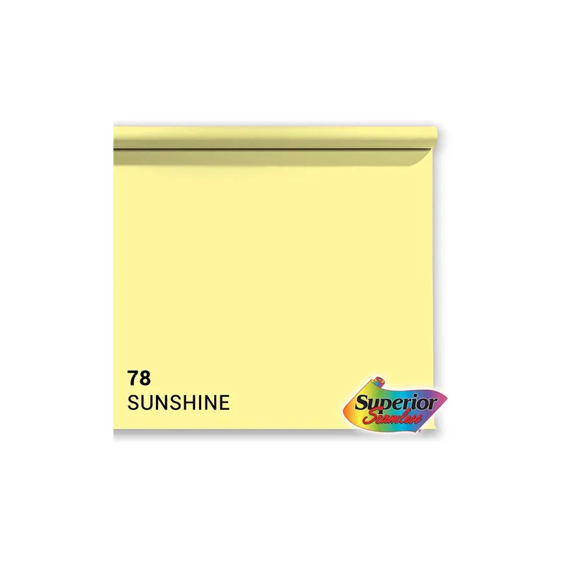 This roll of Superior Specialties backdrop paper is a 2.72 x 11m roll in the color 78. Sunshine, or bright yellow. With this roll of professional quality paper you can create a smooth, even background.