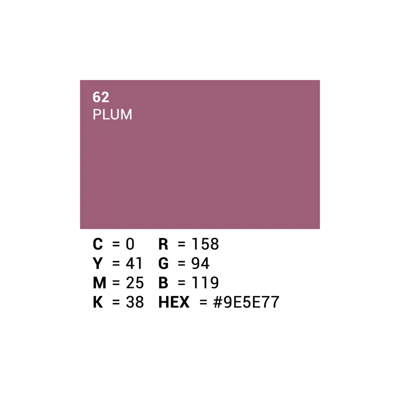 This roll of Superior Specialties backdrop paper is a 2.72 x 11m roll in the color 62. Plum, which is effectively purple-ish. With this roll of professional quality paper you can create a smooth, even background.