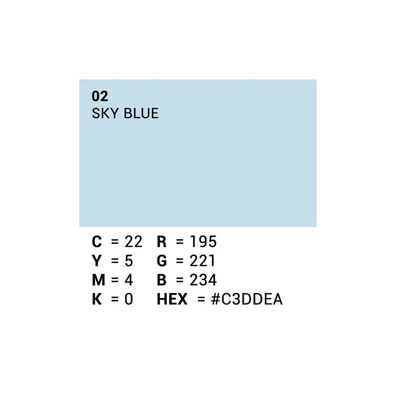 This roll of Superior Specialties backdrop paper is a 1.35 x 11m roll in the color 02. Sky Blue, or light blue. With this roll of professional quality paper you can create a smooth, even background.
