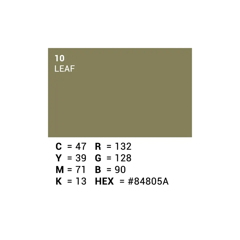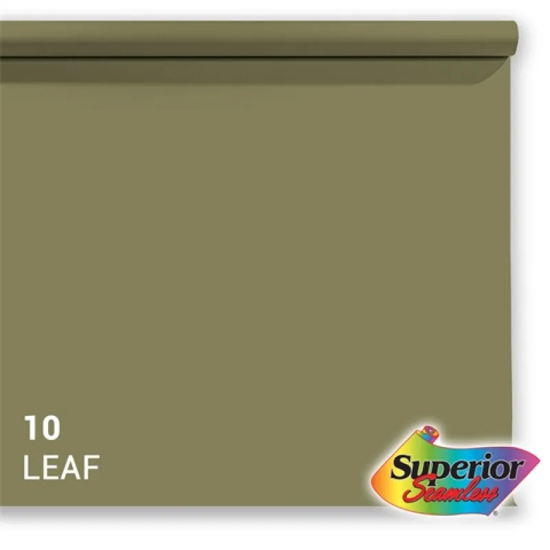 This roll of Superior Specialties backdrop paper is a 1.35 x 11m roll in the color 10 Leaf, which is effectively green/brown-ish. With this natural looking roll of quality backdrop paper you can create a smooth, even background.