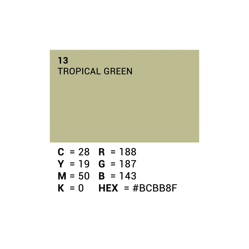 This roll of Superior Specialties backdrop paper is a 1,35 x 11m roll in the color 13 Tropical Green, or green with a slightly brownish tone. With this roll of professional quality paper you can create a smooth, even background.