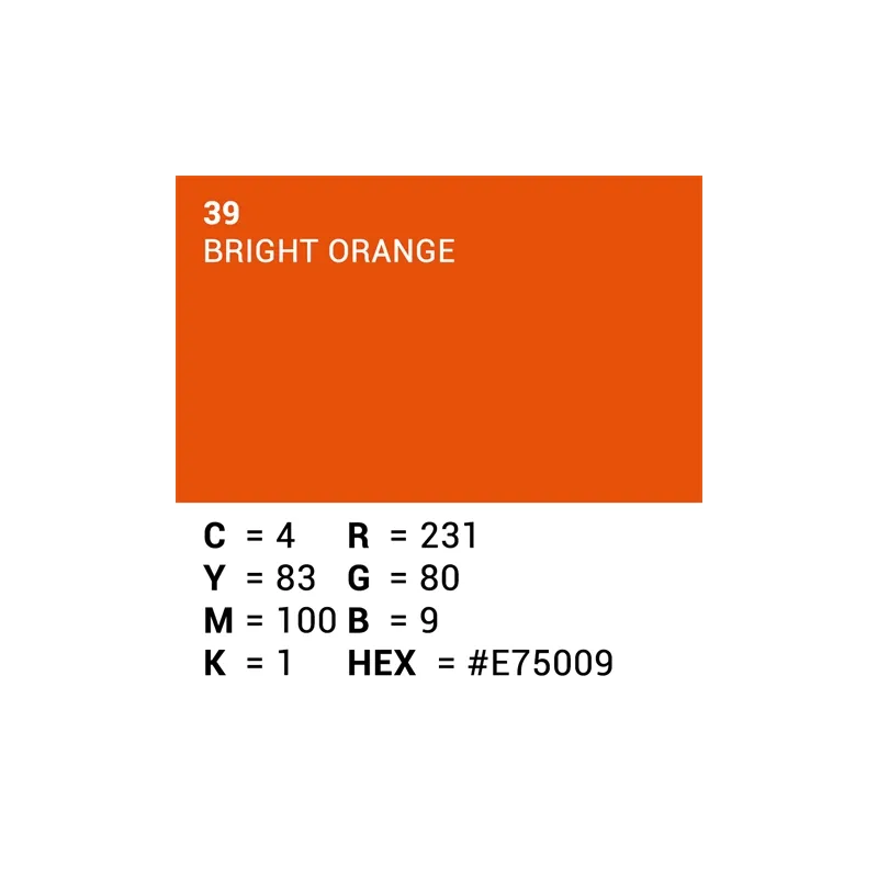 This roll of Superior Specialties backdrop paper is a 1.35 x 11m roll in the color 39 Bright Orange, or orange. With this roll of professional quality paper you can create a smooth, even background.