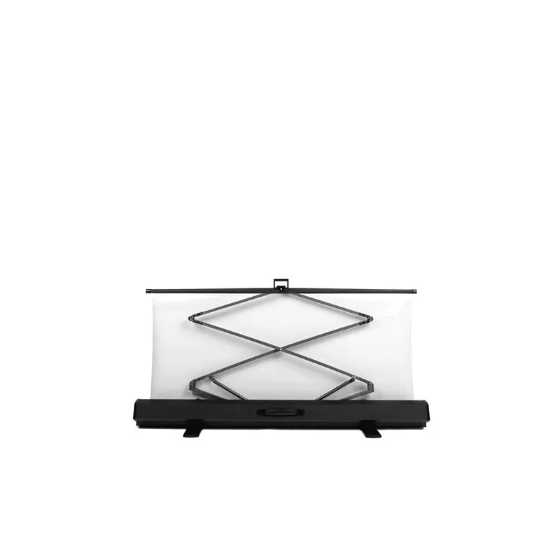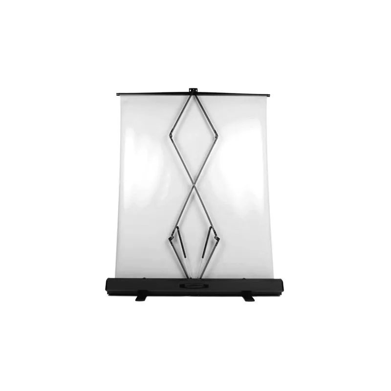 The white screen is made of 100% polyester and is gloss and wrinkle free. Because of this you will always have an even background. The bottom is made of solid aluminum. This ensures not only that the screen can stand securely, but also that you can safely take it with you. On the back there is an adjustable, spring-loaded X-bracket that allows you to adjust the cloth itself to the desired height.