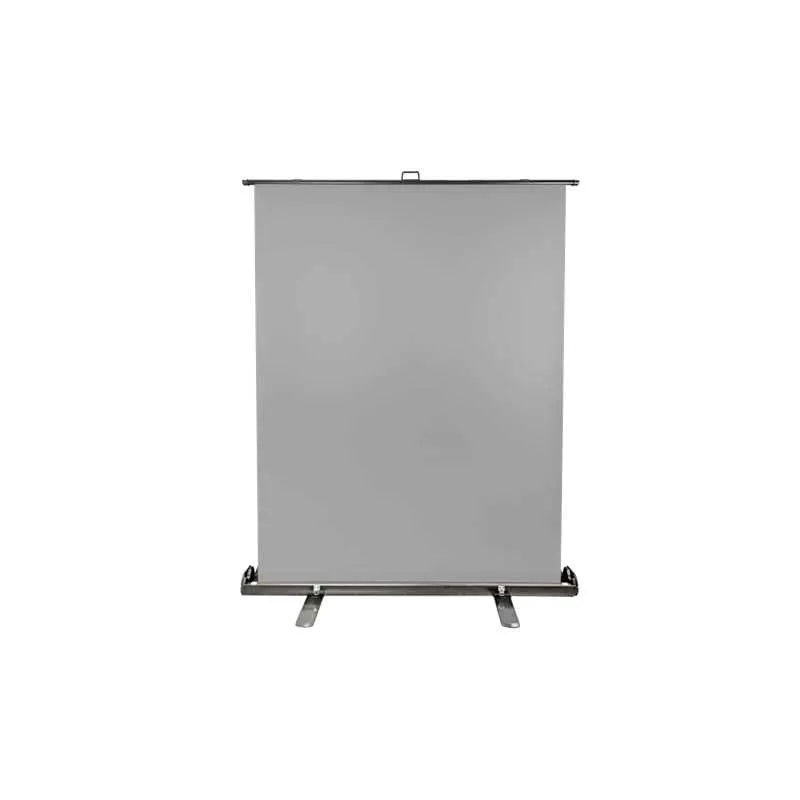 Pelēks ekrāns ir izgatavots no 100% poliestera, un tam nav spīduma un kroku. Tāpēc jums vienmēr būs vienmērīgs fons. Apakšdaļa izgatavota no cieta alumīnija. Tas nodrošina ne tikai to, ka ekrāns var droši stāvēt, bet arī to, ka varat to droši ņemt līdzi. Aizmugurē ir regulējams, ar atsperi noslogots X kronšteins, kas ļauj noregulēt pašu audumu vēlamajā augstumā.