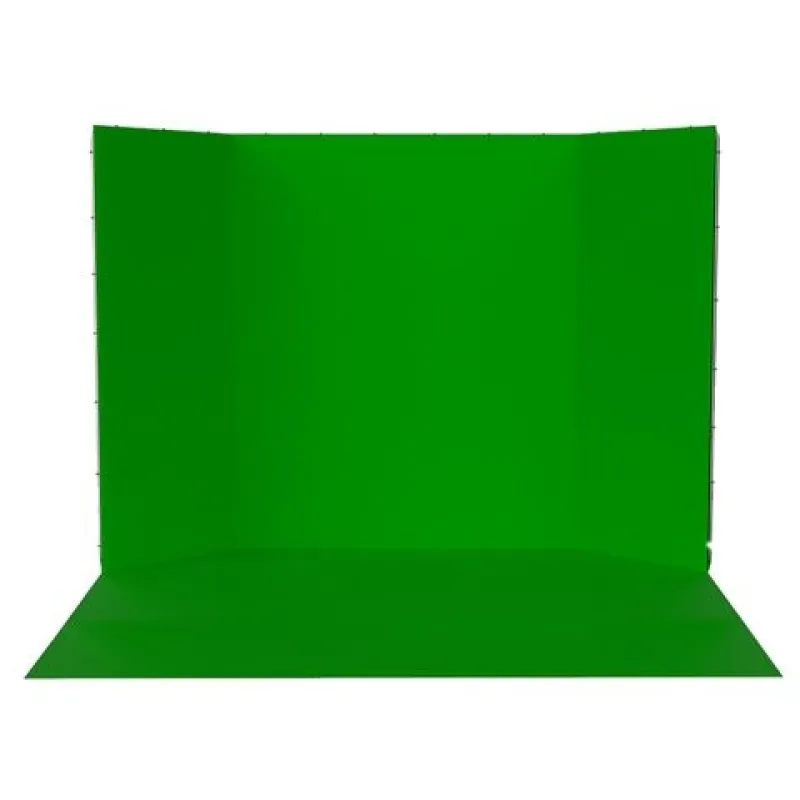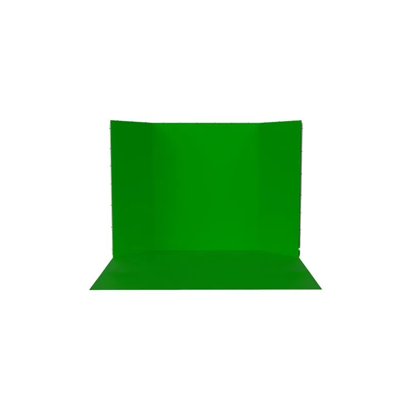 The FSF-240400PT from StudioKing is a panoramic backdrop system with matching green screen backdrop and background. It allows you to place multiple people in a complete chromakey environment, adding a background of your choice in post processing. The background is very easy to place by one person and can be placed independently of a wall or other support. The advantage of the FSF-240400PT is that you buy one complete system, where the background flows perfectly into the background. In combination with the right lighting you can create a professional looking studio. At the optional accessories you can find a lamp we recommend, with the corresponding mounting.