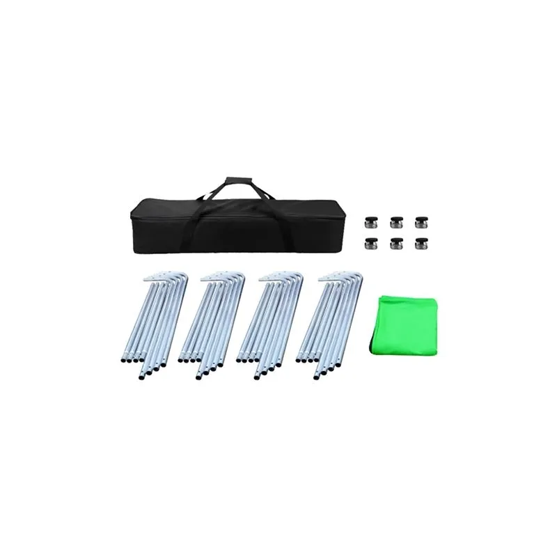 16x Aluminum rod with bend; 16x Aluminum rod straight; 6x Coupling piece; 1x Green cloth background; 1x Green cloth background; 1x Transportation bag