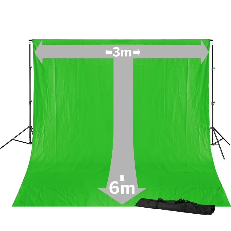 Chromakey green cloth , often used in films, TV and digital studios. With the help of the key function, you can remove the background, so the photo object can be placed in your desired background.