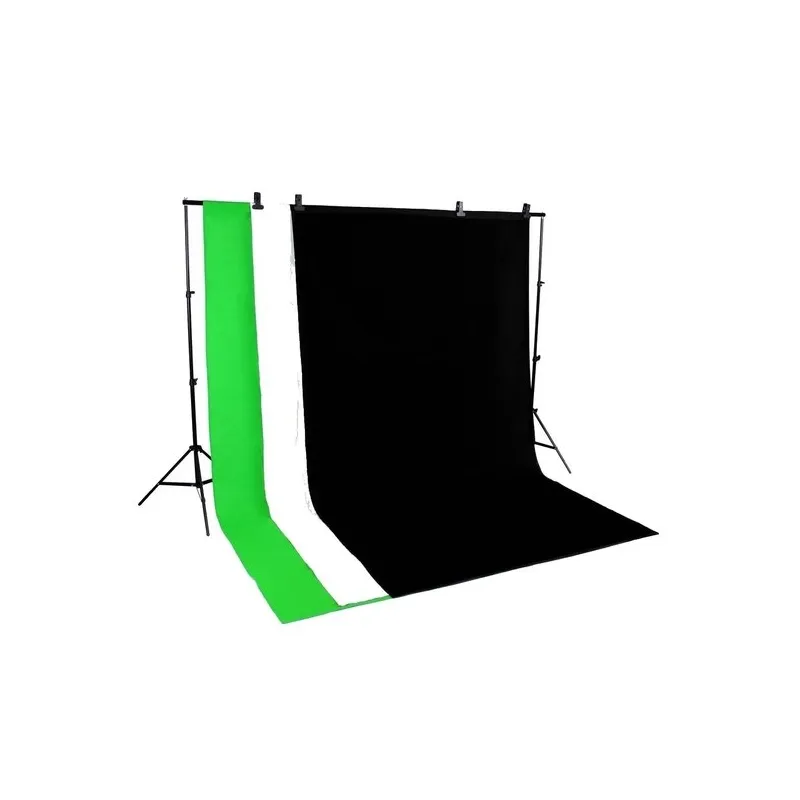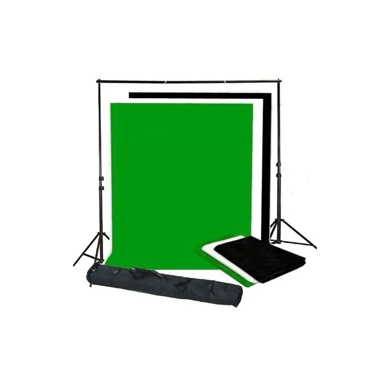 The portable BRESSER BR-BGS2 set is an excellent expandable starter package. The set already includes 3 background cloth in white, black and chromakey green in 3 x 6 m made of washable cotton, which covers the most important colours in photography or video production and allows you to work flexibly and space- savingly on location or in your own studio thanks to the supplied bag.