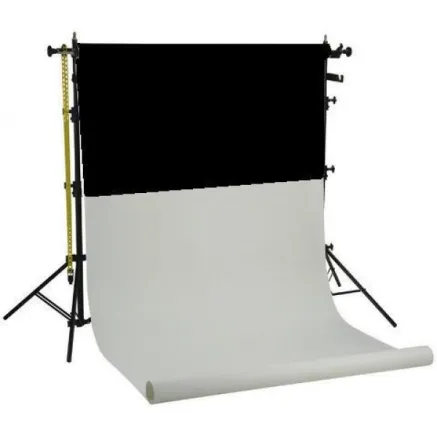 2 x (Light)stand I-2601/M;2 x rolling system B-reel (4 holders, 2 chain (1.7 m), 2 x chain guides) ;1 x roll 1.35x11 m backdrop paper white ;1 x roll 1.35x11 m backdrop paper black