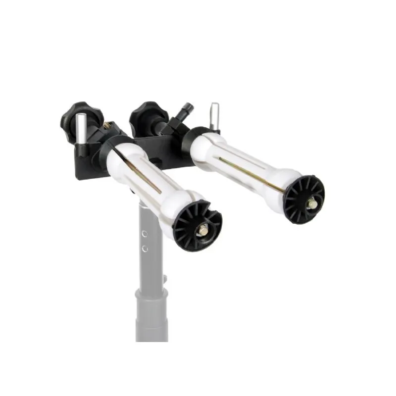 This background set from Falcon Eyes is a great solution to mount two paper rolls to a tripod. The set is suitable for paper rolls up to 2.75 meters wide and with a maximum length of 11 meters. As an alternative you can also attach one or two cross bars, to mount a background cloth. The spigot-connector makes it possible to attach the set to almost any light stand, like the W805 (see optional accessories). Two roll holders are supplied. On the roll holder without chain you will find a rotary knob that allows you to adjust how light or heavy the paper rolls off. The last picture shows the dial.
